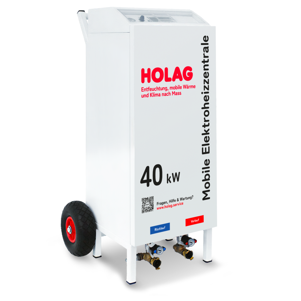 Bauen bedeutet immer auch Feuchtigkeit. Insbesondere wenn noch Kälte dazukommt, kann dies den Baufortschritt erheblich verzögern. Unsere mobilen Bauheizungen schaffen hier Abhilfe und sparen Zeit sowie Geld. Dank unserer umfassenden Gerätepalette haben wir für jede Anforderung das richtige Modell – vom Elektro-Heizlüfter mit 2 bis 10 kW Leistung bis hin zum mobilen Öl-Warmlufterzeuger mit 70 bis 120 kW. Ist heisses Wasser gefragt, reicht die Leistungspalette von Hotboys mit maximal 36 kW hin bis zur mobilen Heizzentrale mit maximal 850 kW Leistung.